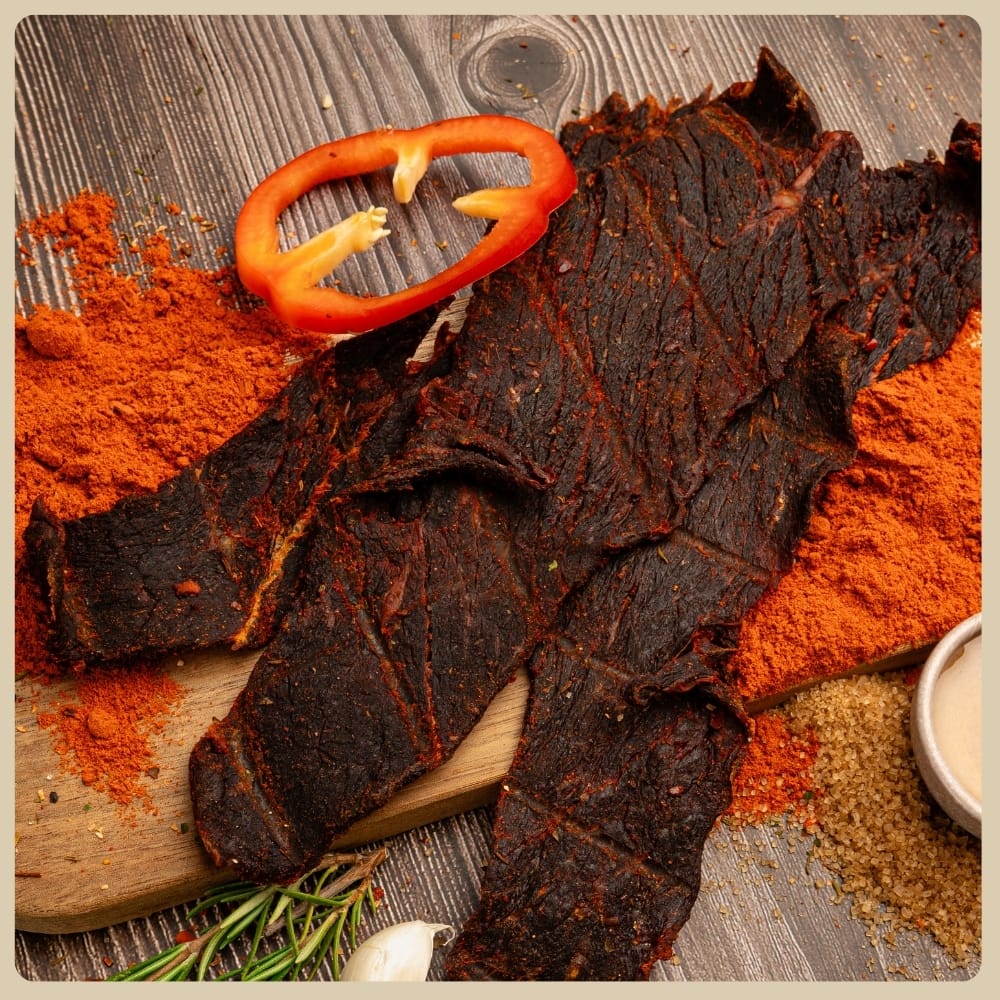 Beef jerky zit boordevol eiwitten, ideaal voor spierherstel en als gezonde snack. Het bevat weinig vet, amper suiker en is daardoor perfect voor een actief leven. Geen kunstmatige troep, maar puur vlees, langzaam gedroogd voor maximale voedingswaarde. Een snack waar je lichaam én smaakpapillen blij van worden.